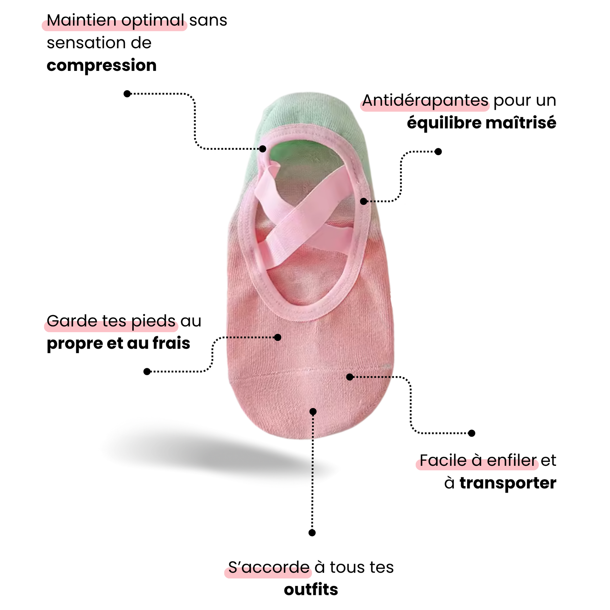 Oui ! Grâce à leur matière extensible et leur coupe étudiée, elles épousent parfaitement la forme du pied sans glisser, même pendant les mouvements les plus dynamiques.
